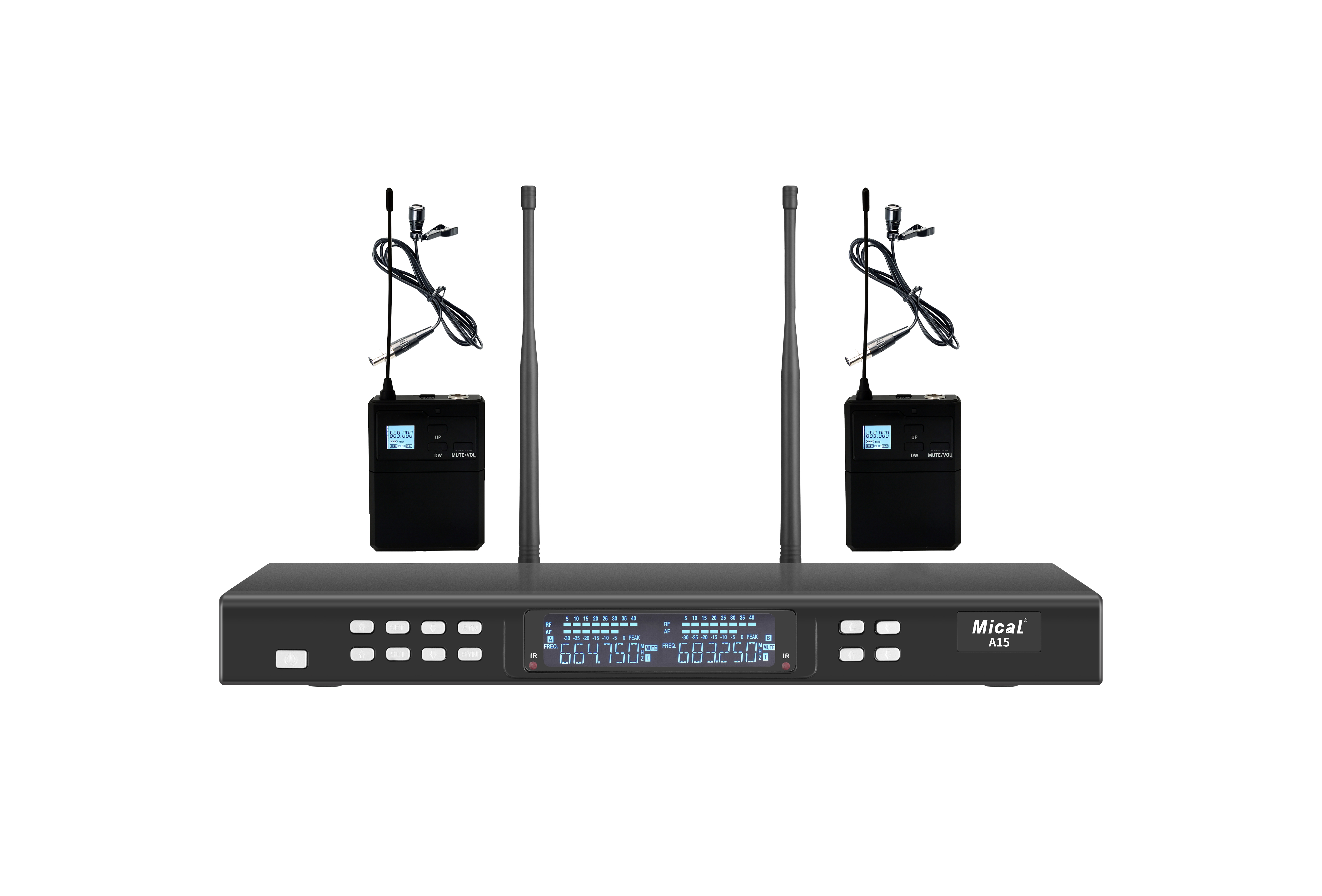 A15一拖二无线麦克风配蓝色手持