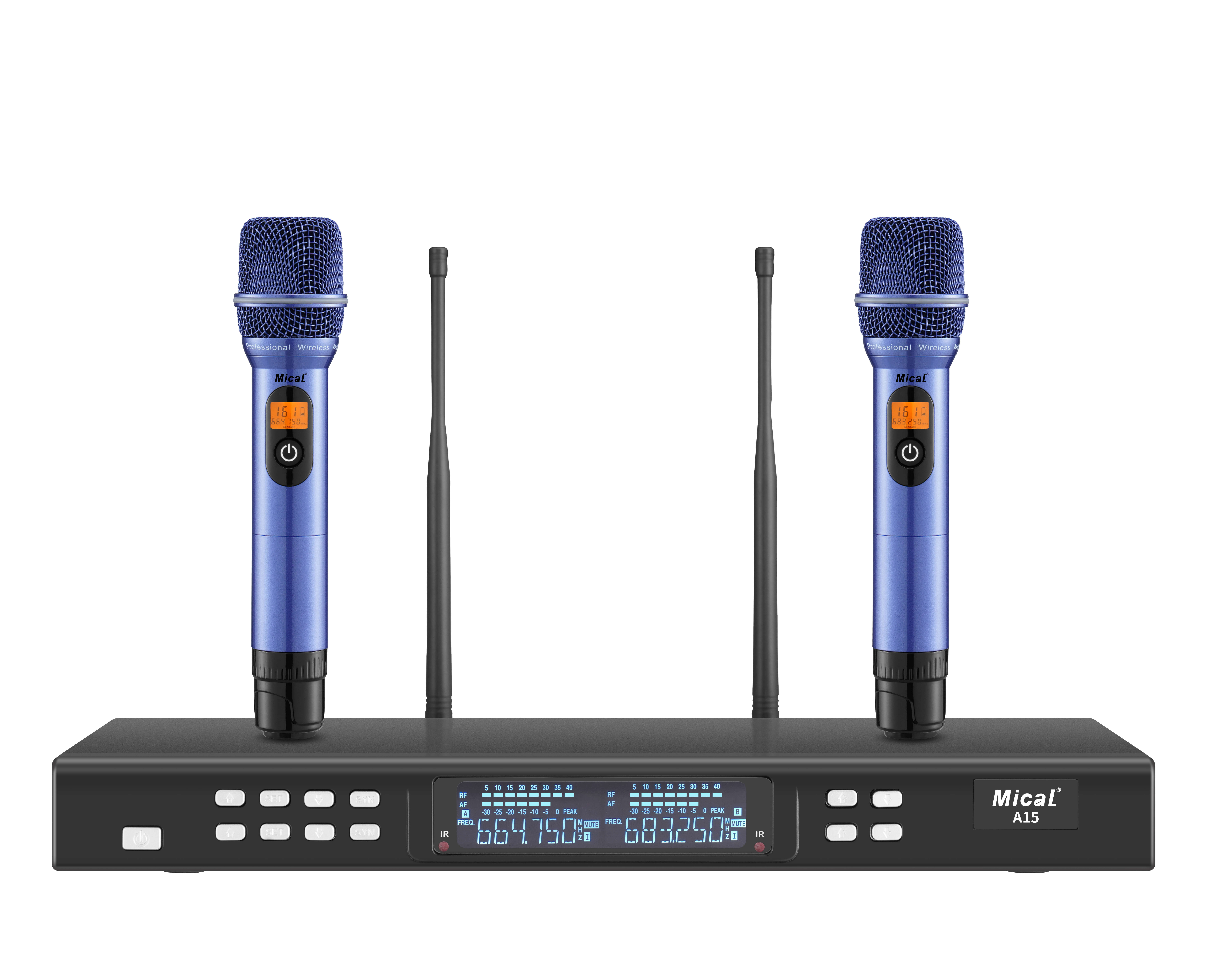 A15一拖二无线麦克风配蓝色手持